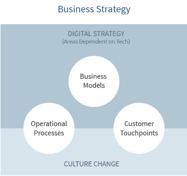 根據埃森哲的說法,數位戰略尋找使用技術來改變活動乃至業務的方法,而 IT 戰略的目標是獨立於其他業務來改變技術。傳統上,IT 戰略的過程是根據當前的業務方向確定投資哪些技術。相反,數位戰略著眼於需要轉變的活動和流程,以便為客戶提供更好的服務。然後,它尋找可以組合起來創造這些體驗的技術和策略的正確組合。通過這一戰略轉變,數位化領導者發現了新的競爭優勢和增長機會。