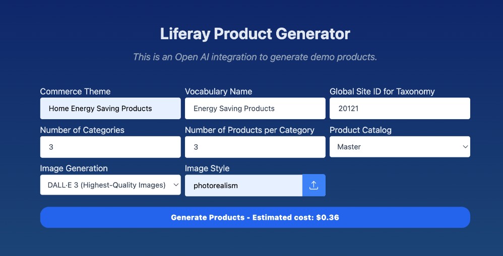 一旦資料從 OpenAI 返回,我們就可以將其傳遞到 Liferay 的 Headless 端點以載入到系統中,從而快速創建產品。使用 GenAI 建立影像時,此過程會稍微長一些,每個影像大約需要 6-10 秒。相較之下,我們只需要很少的時間就可以得到少數分類產品的結果,這節省了大量手動收集和載入內容的時間。