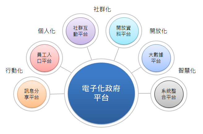 電子化政府的普及應用,對於促成公民社會的發展、公義社會的追求及優質網路社會的建構,都帶來相當的影響。我國自民國87年開始擘劃電子化政府,已經順利完成第一階段的政府網路基礎建設與第二階段的政府網路應用推廣計畫,第三階段的優質網路政府計畫則持續推動提供隨手可得的政府服務,協助政府轉型成為e化治理之活力政府,第四階段電子化政府計畫聚焦於全程服務,以對內提升運作效率、對外增進為民服務品質、並兼顧社會關懷與公平參與等三面向為核心,達成服務無疆界,全民好生活的願景,並將於105年屆期。