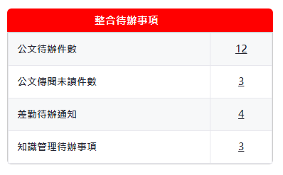 - 同時可整合EIP平台內部待辦事項資訊,如: 行事曆行程、會議行程、工作任務分派等